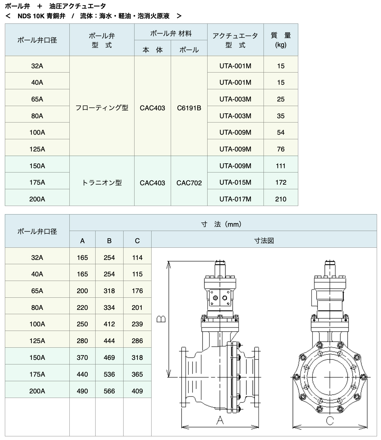 101-ボール弁+油圧アクチュエータ<NDS 10K 青銅弁:流体:海水・軽油・泡消火原液>